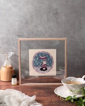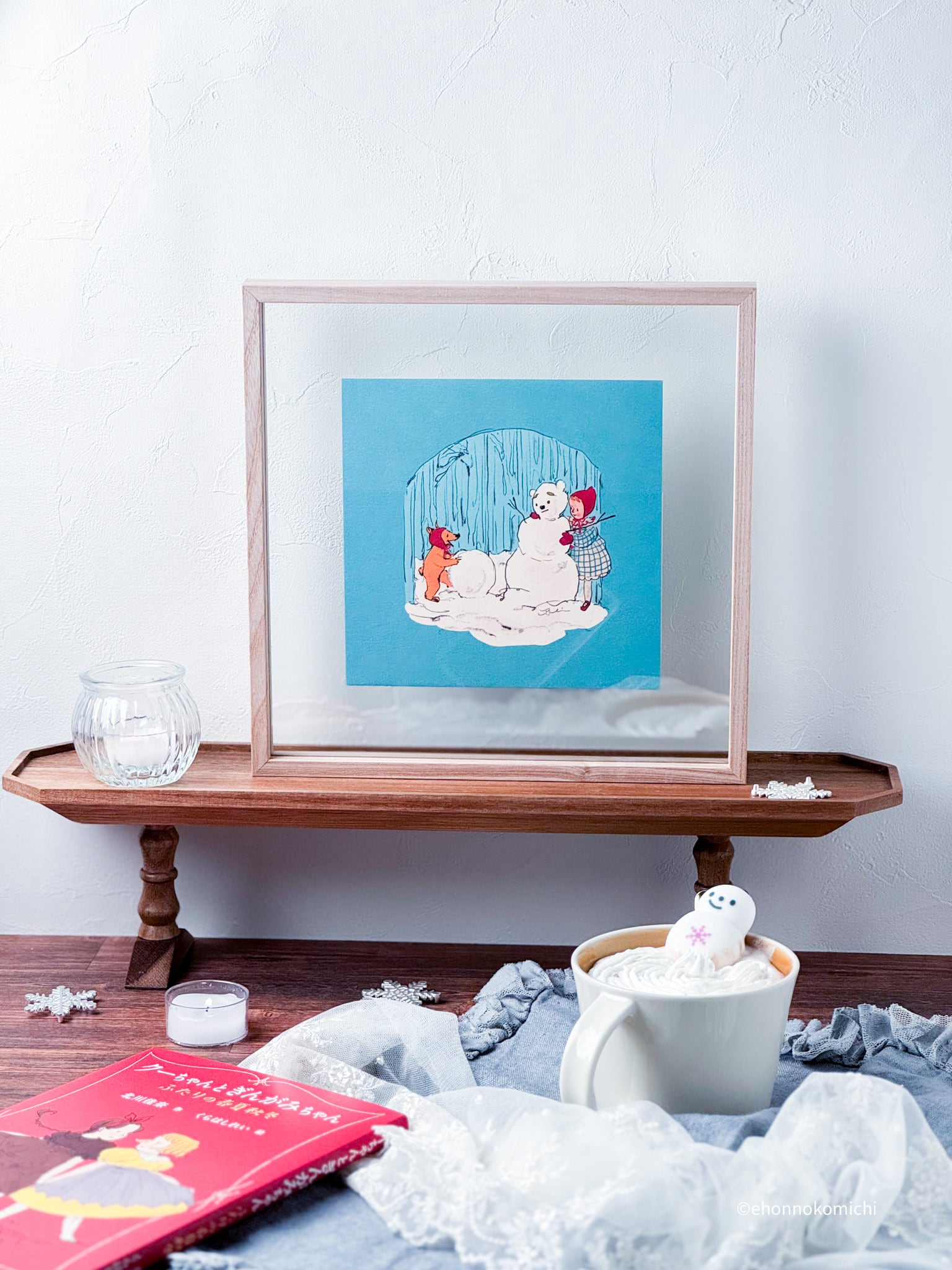 2枚のガラスで写真を挟む仕組みなので、写真だけではなくお気に入りのポストカードや押し花をコラージュしても。