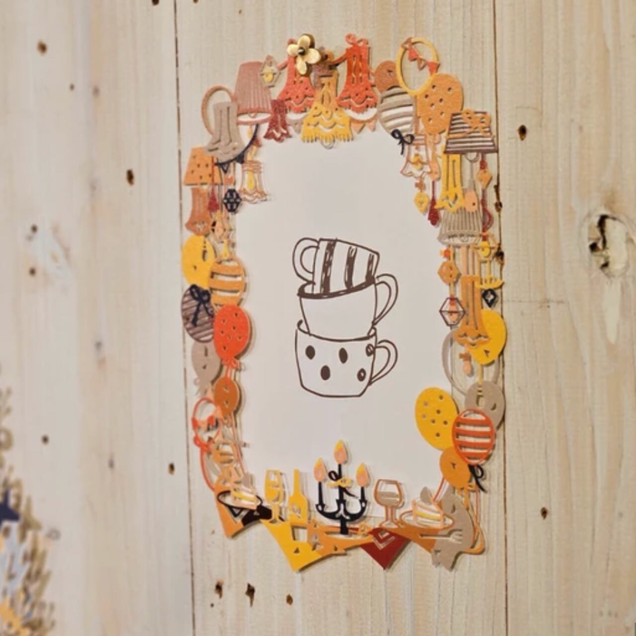 バルカナイズドペーパー 切り絵風パーティー フォトフレーム Orange